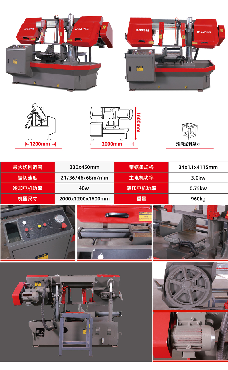 H-33/45S卧式带锯床结构特点: