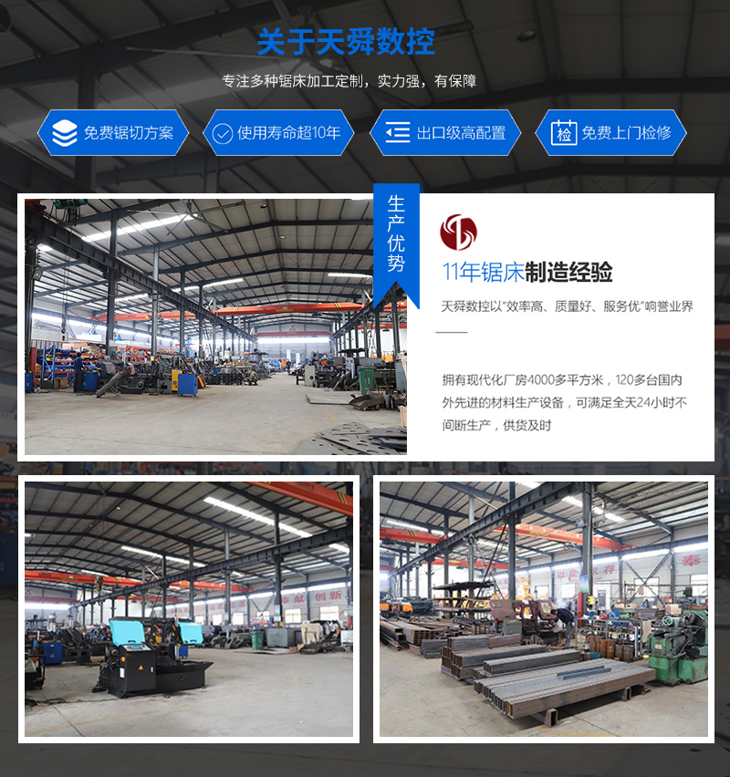 1、双立柱结构,配合大直径立柱和超长滑套(内附自润轴承),组成稳固的锯切结构,保证导向精度,锯切平稳可靠