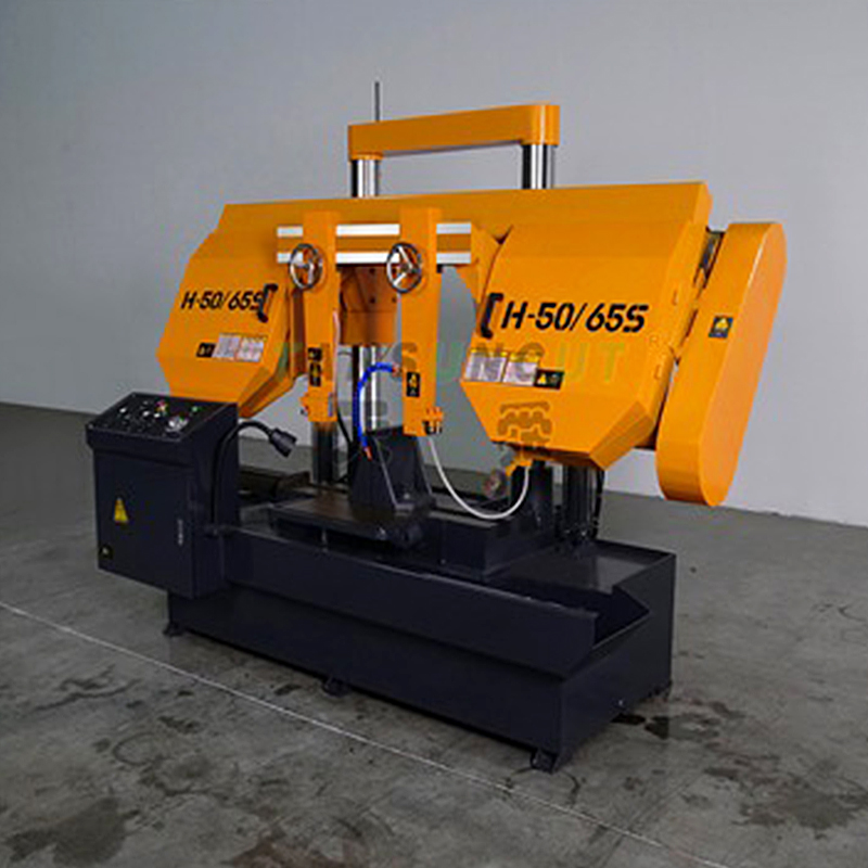 本机床主要用于切割金属型材、管材、圆料和方料等钢胚,在选取适当的工艺参数后,可切割各种黑色或有色金属材料,它使用于钢铁、模具模胚、机械、冶金、矿山、石油、汽车、造船、机床……等大中型企事业单位,是选择锯切大型胚件的良好工艺设备,其切削刀具采用双金属带锯条,锯口窄、耗材少、所需动力小等优点,是一种具有节材节能的高效切割设备。