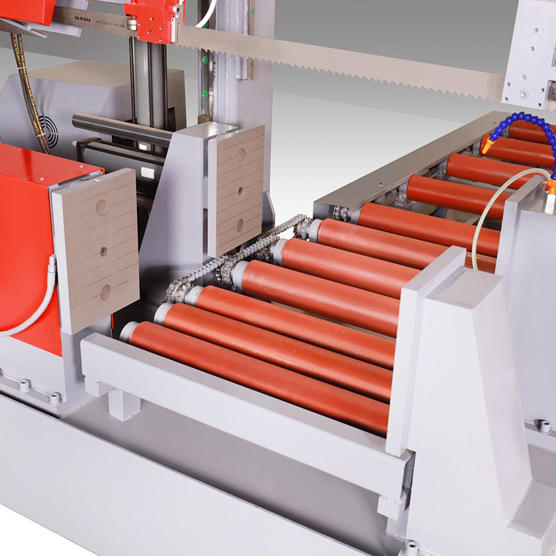 机床采用双方柱式结构,保证结构可靠性、稳定性和先进性,各部分功能具有足够的裕度,同时也保证具有高品质的锯切精度。