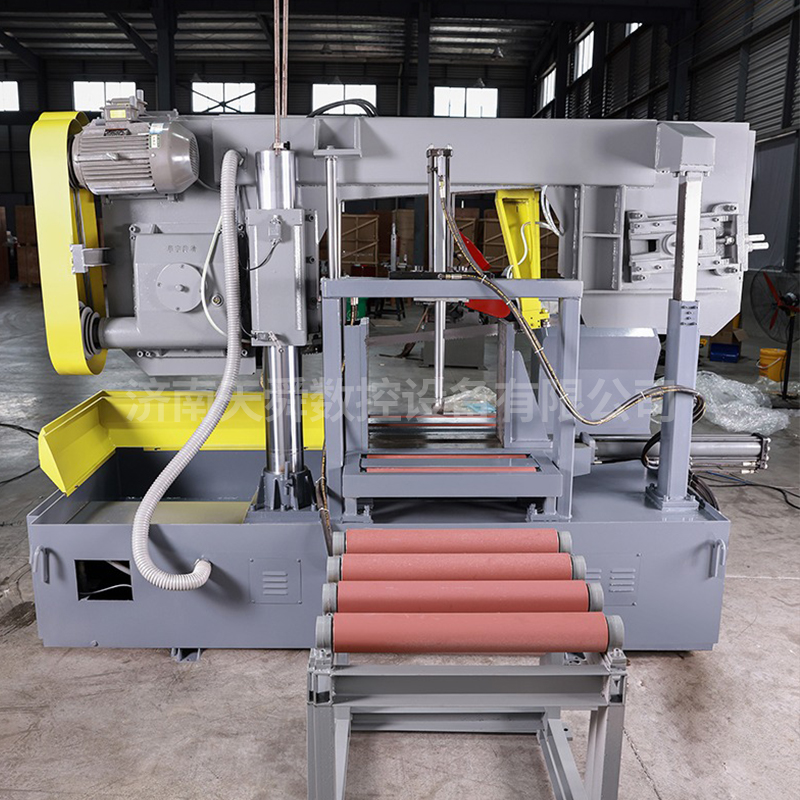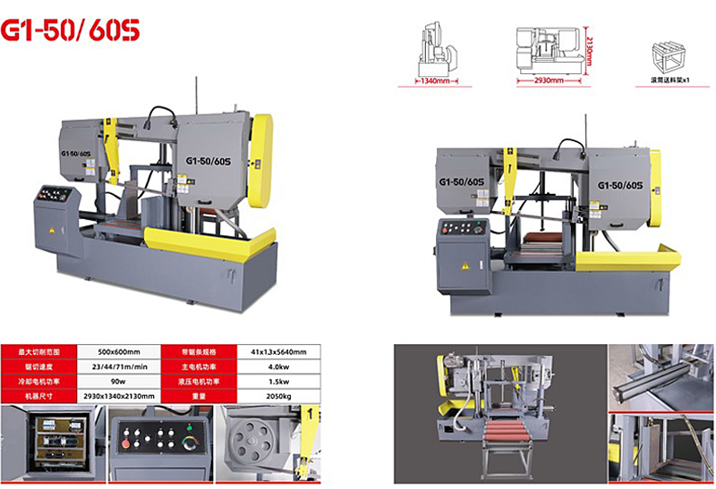 本机床主要用于切割金属型材、管材、圆料和方料等钢胚,在选取适当的工艺参数后,可切割各种黑色或有色金属材料,它使用于钢铁、模具模胚、机械、冶金、矿山、石油、汽车、造船、机床……等大中型企事业单位,是选择锯切大型胚件的良好工艺设备,其切削刀具采用双金属带锯条,锯口窄、耗材少、所需动力小等优点,是一种具有节材节能的高效切割设备。
