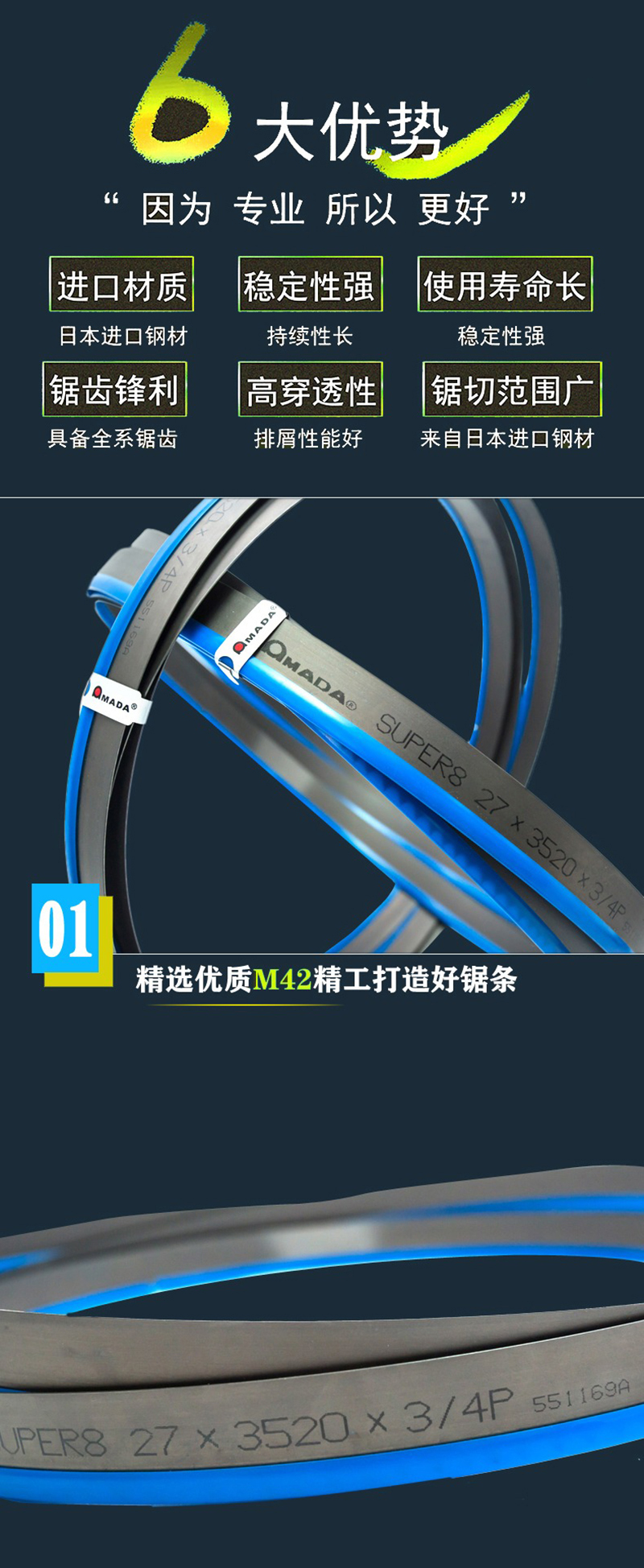 我公司是日本AMADA带锯条系列产品正规代理,可以为您定制提供各系列、各长度、各齿形、各宽度、各厚度的AMADA带锯条,我们货源充足,配送快捷,面向全国,以品质、诚信、服务为宗旨,竭诚为您提供AMADA带锯条系列产品!